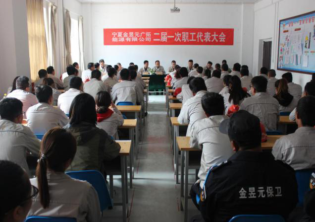 2018年10月16日下午14時,寧夏金昱元廣拓能源公司二屆一次職工代表大會在化工公司調度室召開。會議由黨總支書記副總經理馬建東主持。集團公司黨委副書記、工會主席王立軍及各子公司、職能部室職工代表共108人參加了會議。