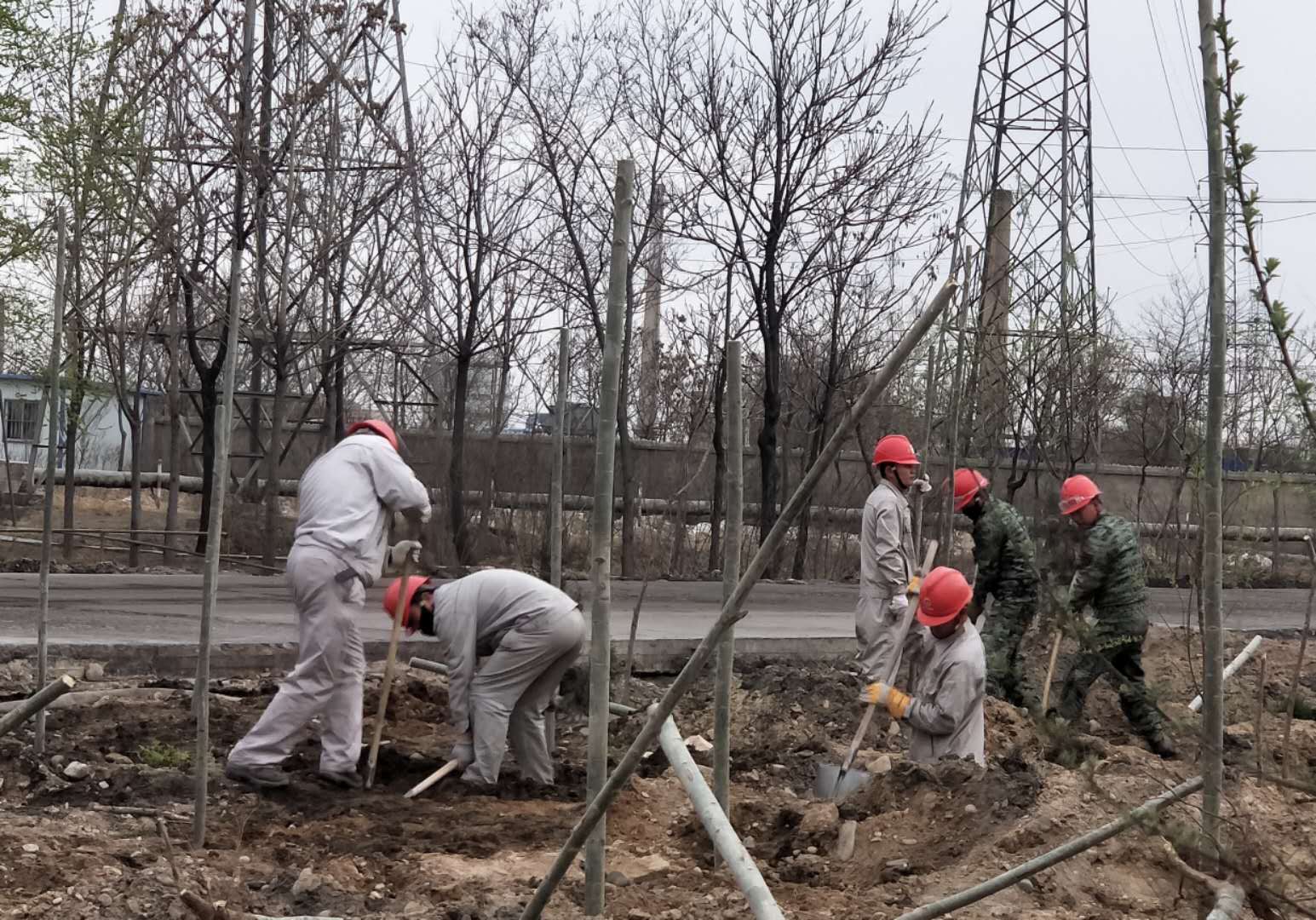 4月10日和11日,資源再生公司組織所有日勤人員栽種樹木。先后在東大路西側,4#電石爐西側,職工回民餐廳門口及成品裝置東邊等等地方栽種樹木上千棵。大家齊心協力,扶樹的、填土的,每個人都在努力的加快進度,頭上冒出了汗珠,渾身酸痛,可大家仍然堅持著,短短兩天時間就將所有計劃的樹木全部栽種完畢。