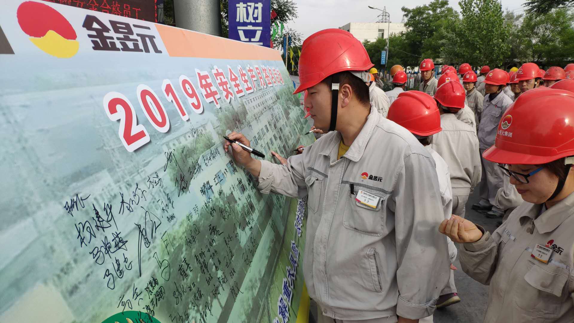 各級管理人員和參會人員有序進行“安全簽名”活動。