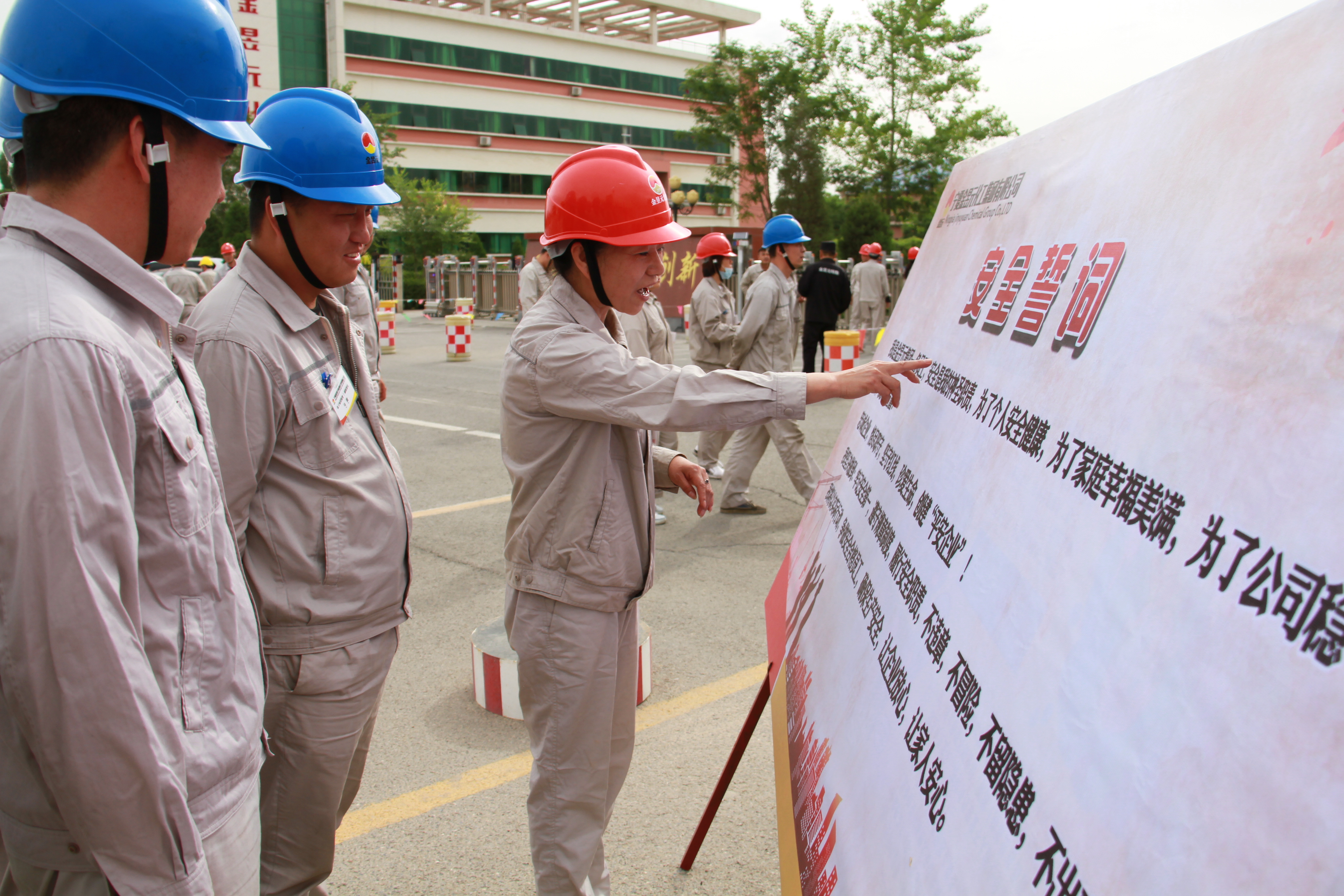 2019年6月4日8點40分許,寧夏金昱元化工集團青銅峽片區安全生產月宣傳動員及“安全生產月”活動啟動儀式即將召開。能源化學公司廠門口各色彩旗迎風招展,青銅峽片區安全生產部精心制作的一塊塊各類安全生產知識宣傳展板排列整齊一字排開,片區全體日勤人員著裝統一,列隊整齊,氣氛莊嚴肅靜。
