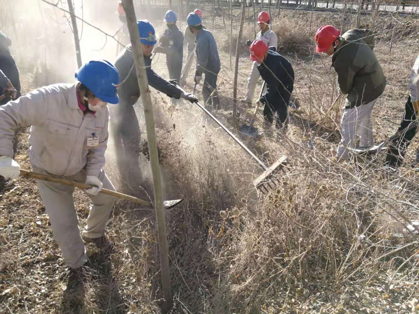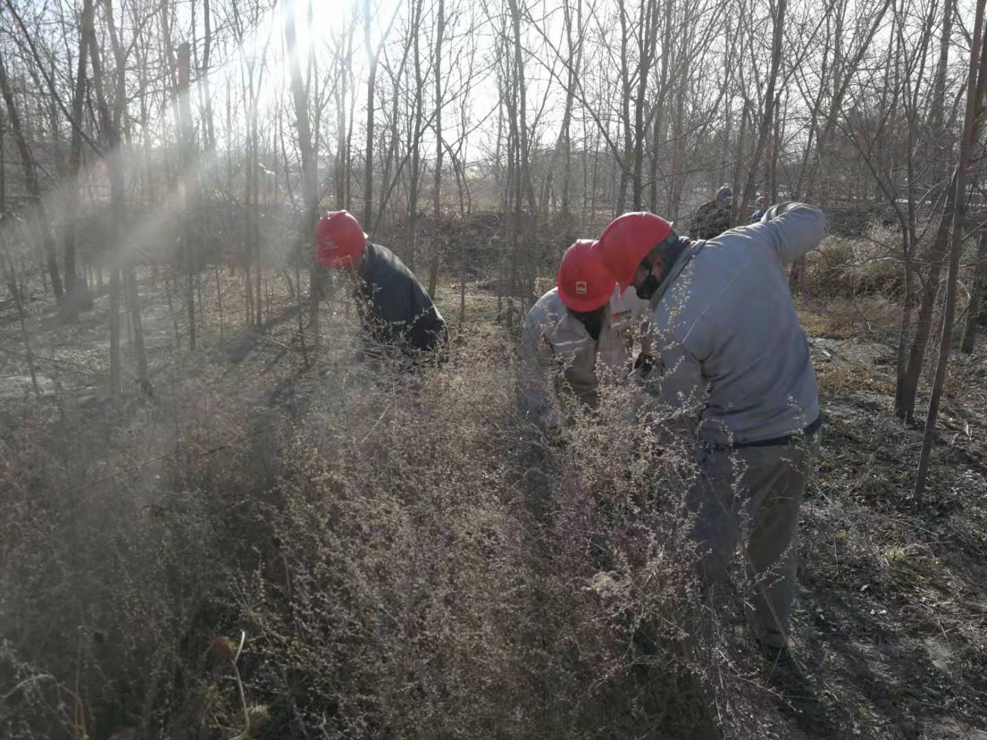 嚴寒的冬天已經來臨,后山樹林落葉堆積較厚,干燥的枯草在風中搖曳,存在較大火災風險隱患。結合集團公司正在開展的第二批“不忘初心、牢記使命”主題教育實踐活動,青銅峽片區集中組織全體黨員干部和日勤職工開展后山樹林落葉、枯草清理工作。