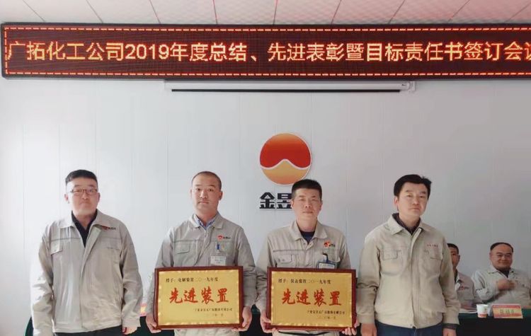 春節前期,廣拓能源化工公司組織召開2019年度工作總結、先進表彰暨目標責任書簽訂會議。本次會議由公司副總經理盧志銀主持,化工公司總經理、副總經理、安全總監、副總工程師出席,25名先進集體、個人及70余名職工代表參加。