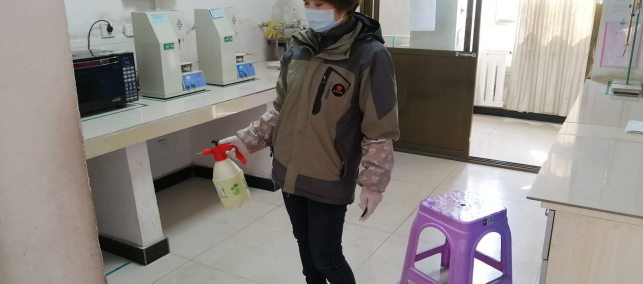 在崗位辦公室消毒。