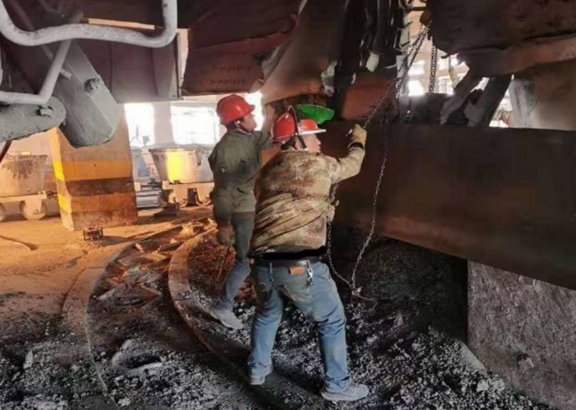 12月20日,維修工對出爐口出爐設備設施進行修復,主要修復了出爐口防火墻擋板、校正出爐軌道板和導向輪,大大減少了出爐系統制約生產的現象。隨著環保局勢日益嚴峻,裝置組織維修工檢查圓盤布料器散點收塵和出爐收塵煙罩,確保收塵效果。