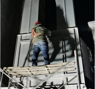 檢修作業全程跟蹤,一天一夜檢修下來,有睡在辦公室沒回家的,也有吃飯就在作業現場……比比皆是。總經理吳紅衛更是如此,一個作業一個作業現場轉上轉下,從2026提升機作業點到回轉窯主傳減速機,再到篦冷機、煤磨、烘干破、預熱器、2301、2323、2401提升機以及高溫風機、回轉窯窯內及燃燒器檢修現場,指導,建議,一直值守在現場,忙著跟工人們同時收工,一整晚都未歸宿就寢室。工人們,裝置長擔心他的身體,時常提醒讓他回去休息一下,喝口水,而他放心、安慰大家說,“我和大家一樣的心情,早完工,產量就能早生產一點,我們后續生產就能輕松一點,大家加油”。一直以來,他和這個班子成員、工人們一起頂著嚴寒,一直堅守在現場安全履職和協調把控檢修進度,不厭其煩的一次次的詳細交底,直到一項一項設備檢修更換完畢。