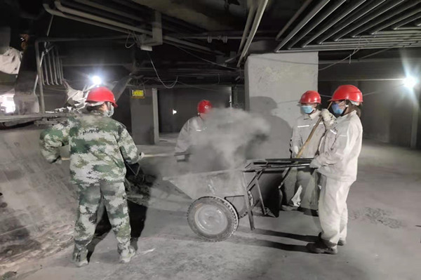 經過二層爐面時我的眼球被幾個迷彩綠吸引了,走進一看是我們可愛的女職工,她們拿起了大鍬,掃把兩人一組拉著推灰的車子清理空冷倉空冷管壁積灰,爐面積灰及更換后的保溫材料,女職工們以主人翁的姿態緊跟步伐,以“團結、拼搏、求是、創新”的企業精神要求自己,以“相互尊重、相互信、任相互支持、榮辱與共”的團隊精神勉勵自己,互幫互助,為電石發展展示巾幗風采。