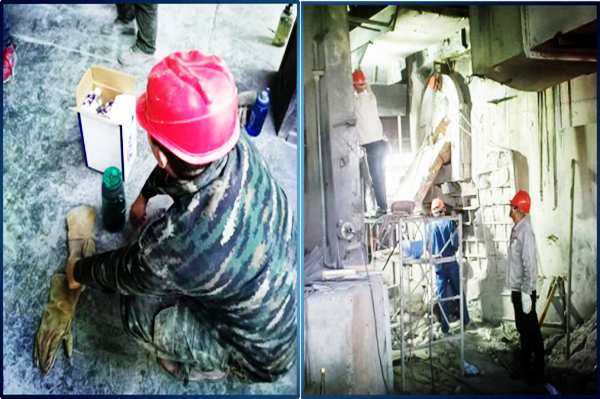 時光如白駒過隙,1#、2#電石爐已安全穩定生產六年有余,爐內碳磚、耐火磚燒損嚴重,已達到大修周期,加之五、六月份大量使用佳成礦山石料,爐內鐵水多,四臺電石爐爐眼附近耐火磚、碳磚不同程度燒損,尤其是1#爐3#眼、2#爐3#眼,爐眼上方爐壁被鐵水擊穿,出爐工作不能正常進行,嚴重影響到電石爐的安全穩定運行;為盡快消除制約安全生產穩定運行的隱患問題,為電石爐穩定運行提供強有力的保障,在公司統一部署下,自五月底開始,集各裝置維修工力量由電石一裝置組織對兩臺爐爐壁進行修復。