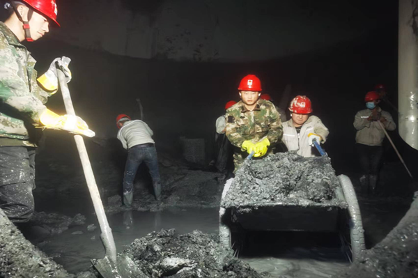 脫硫塔檢修現場,塔內料液堆積多,空間小,清理難度大,只能用小推車一車一車的拉運到人孔門,再一鍬一鍬的鏟上鏟車,工作量非常大,只有熱力裝置的人很難在檢修時間內完成料液清理工作。公司總經理、副經理守在現場,協調各科室、裝置人員協助清理,兩天兩夜沒有間斷,在滿是泥水的脫硫塔內來來回,奔跑了無數次,污泥沾滿了全身每一個地方,不知是汗水還是泥水浸濕了衣服,他們干活不分你我,不惜力氣,相互配合,安全高效的完成了料液清理工作,為下一步脫硫塔消漏、防腐做好鋪墊。