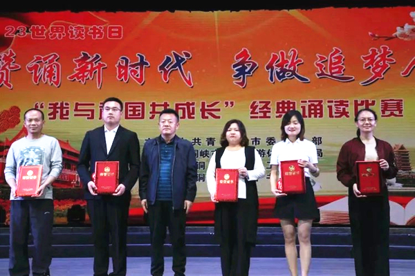 4月23日世界讀書日,由中共青銅峽市宣傳部、青銅峽市文化旅游體育廣播局、青銅峽市總工會聯合主辦,青銅峽市圖書館承辦的“贊頌新時代,爭做追夢人——我與祖國共成長”經典誦讀比賽在青銅峽市影劇院隆重舉行。