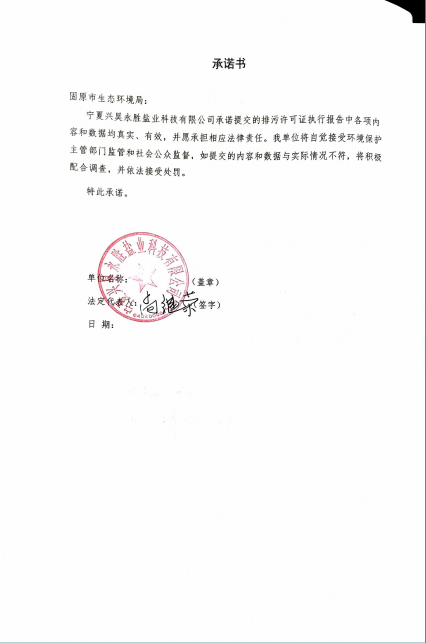 寧夏興昊永勝鹽業科技有限公司2023年度排污許可執行報告