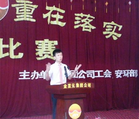 為進一步落實企業安全生產主體責任,繼續推動公司“安全生產年”活動的深入開展,6月30日,寧夏金昱元化工集團公司工會、團委、安全環保部聯合舉辦了以“安全責任,重在落實”為主題的安全知識演講比賽。公司領導及員工代表300余人觀看了比賽。